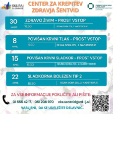 Zdravstveni dom Šentvid – Center za krepitev zdravja: delavnice v marcu in aprilu 2026